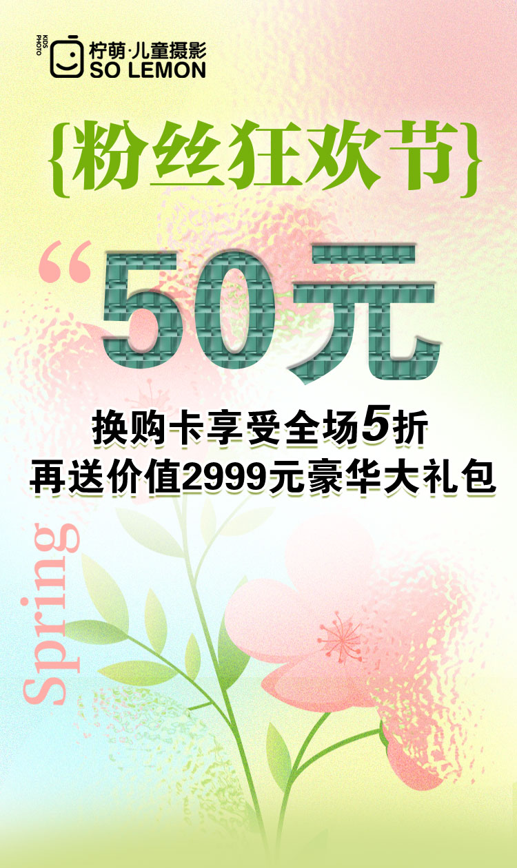 我正在参加【柠萌·儿童摄影】粉丝狂欢节!仅需50元换卡享受全场5折!再送价值2999元豪华大礼包!