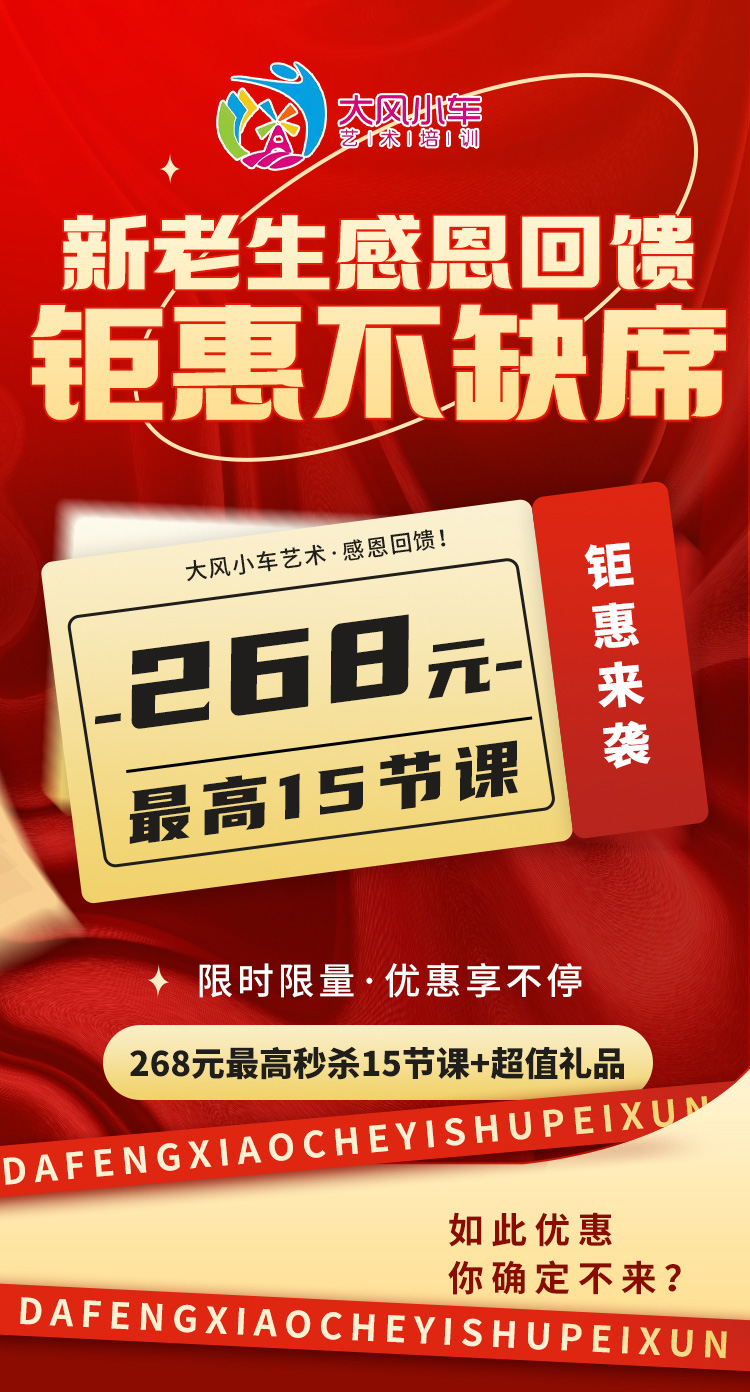 【大风小车艺术】新老生感恩回馈!钜惠不缺席!仅需268元抢报最高15节课!