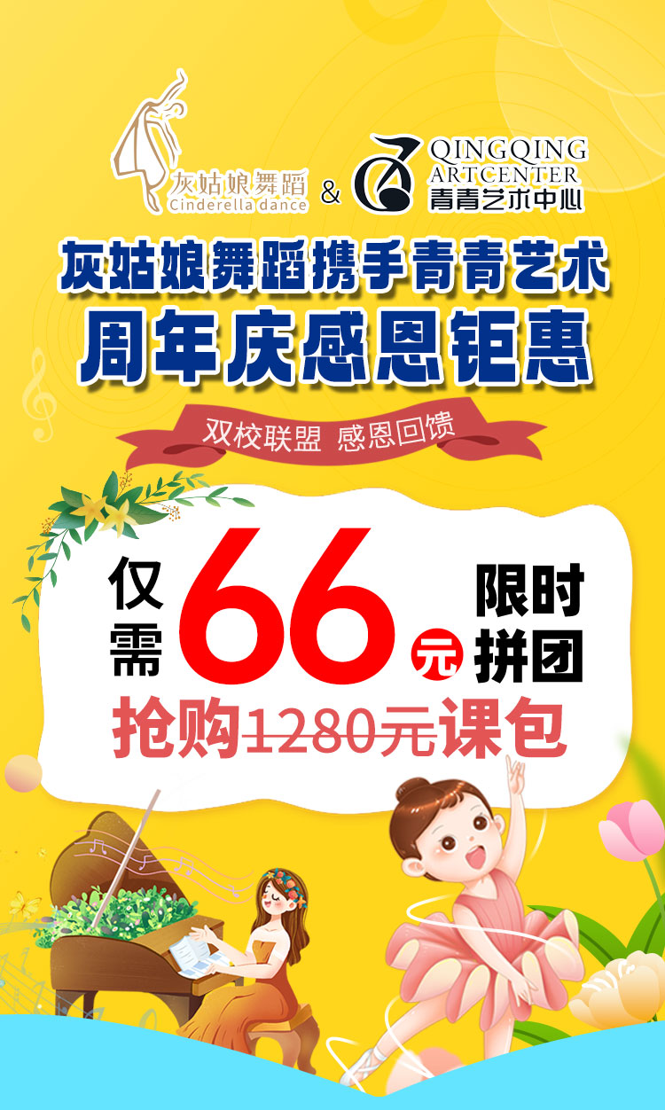 我正在参加【灰姑娘舞蹈&青青艺术 】周年庆感恩钜惠!仅需66元抢购1280元课包!心动不如行动!快来呀!