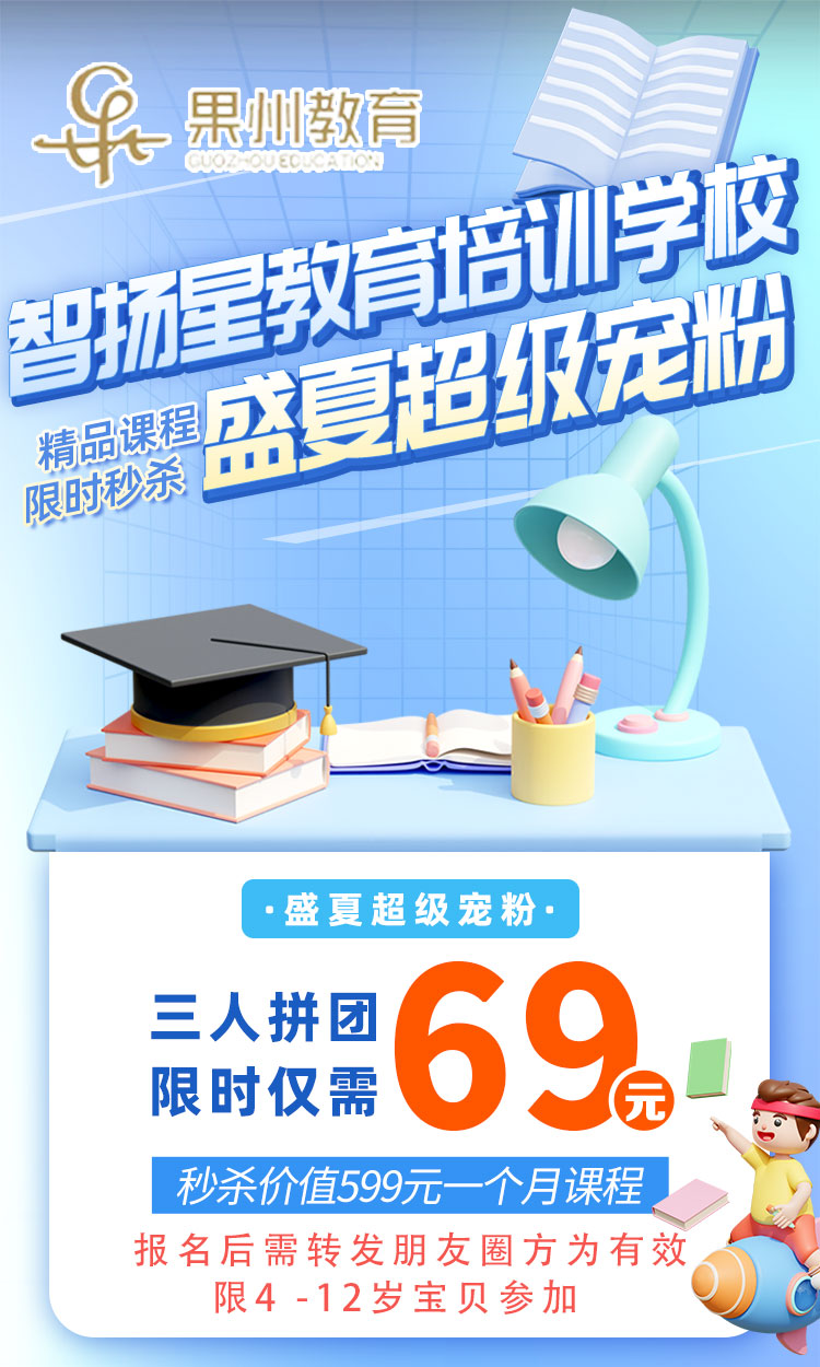 【智扬星教育培训学校】盛夏超级宠粉!三人拼团仅需69元!秒杀599元一个月课程!