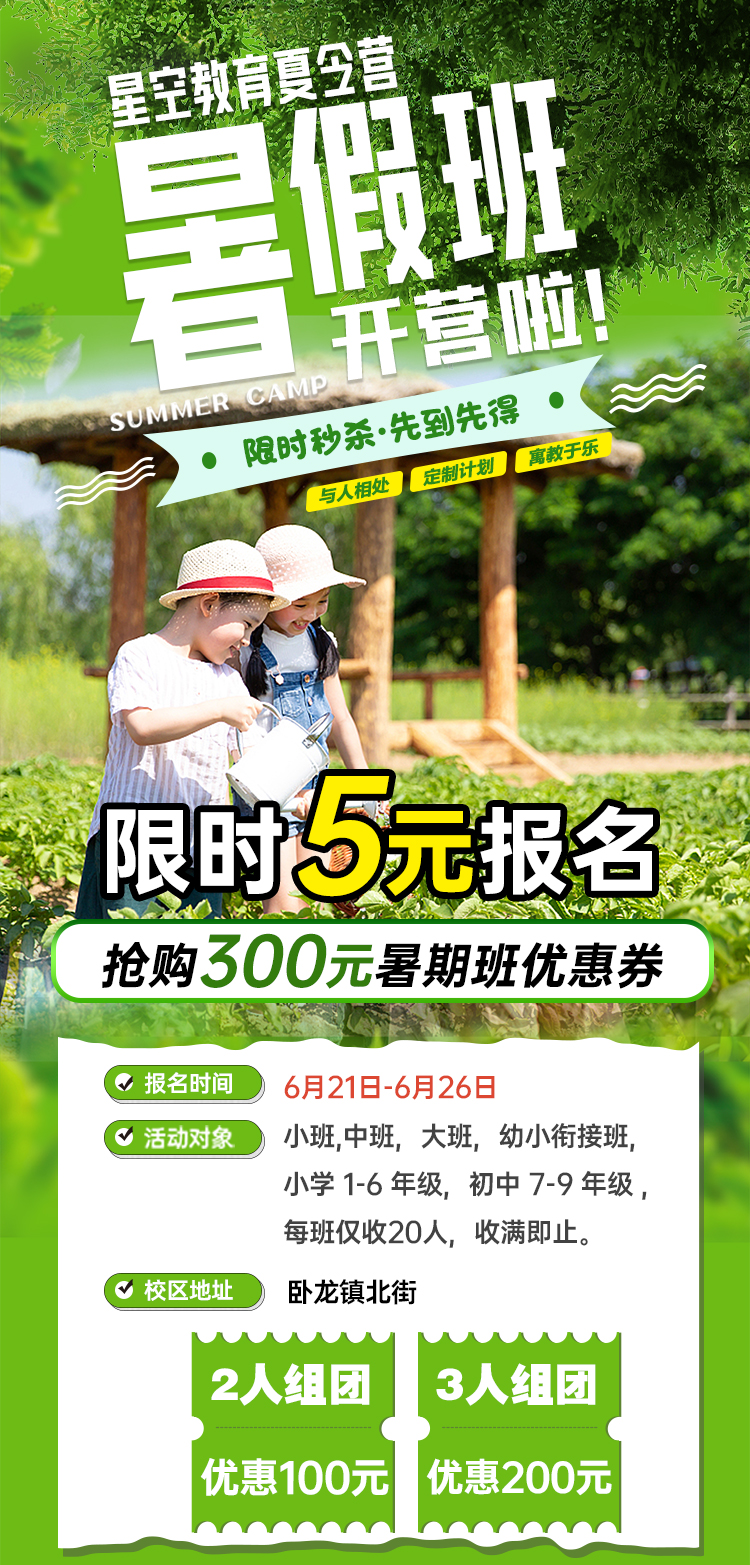 我正在参加【星空教育】星空教育夏令营,暑假班开营啦!限时5元报名!300元暑期班优惠券!