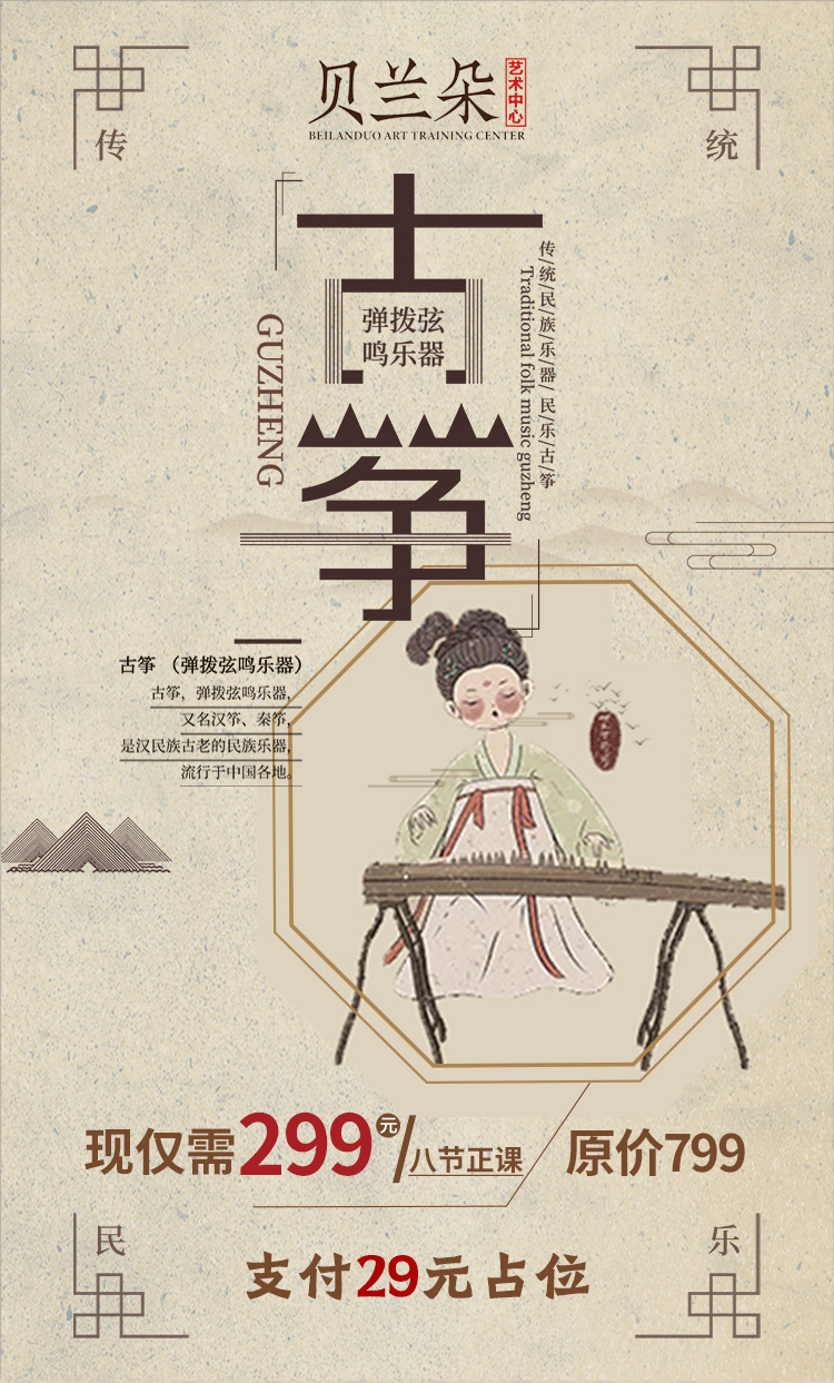 我正在参加【贝兰朵艺术中心】古筝招生!仅需支付29元抢占名额!