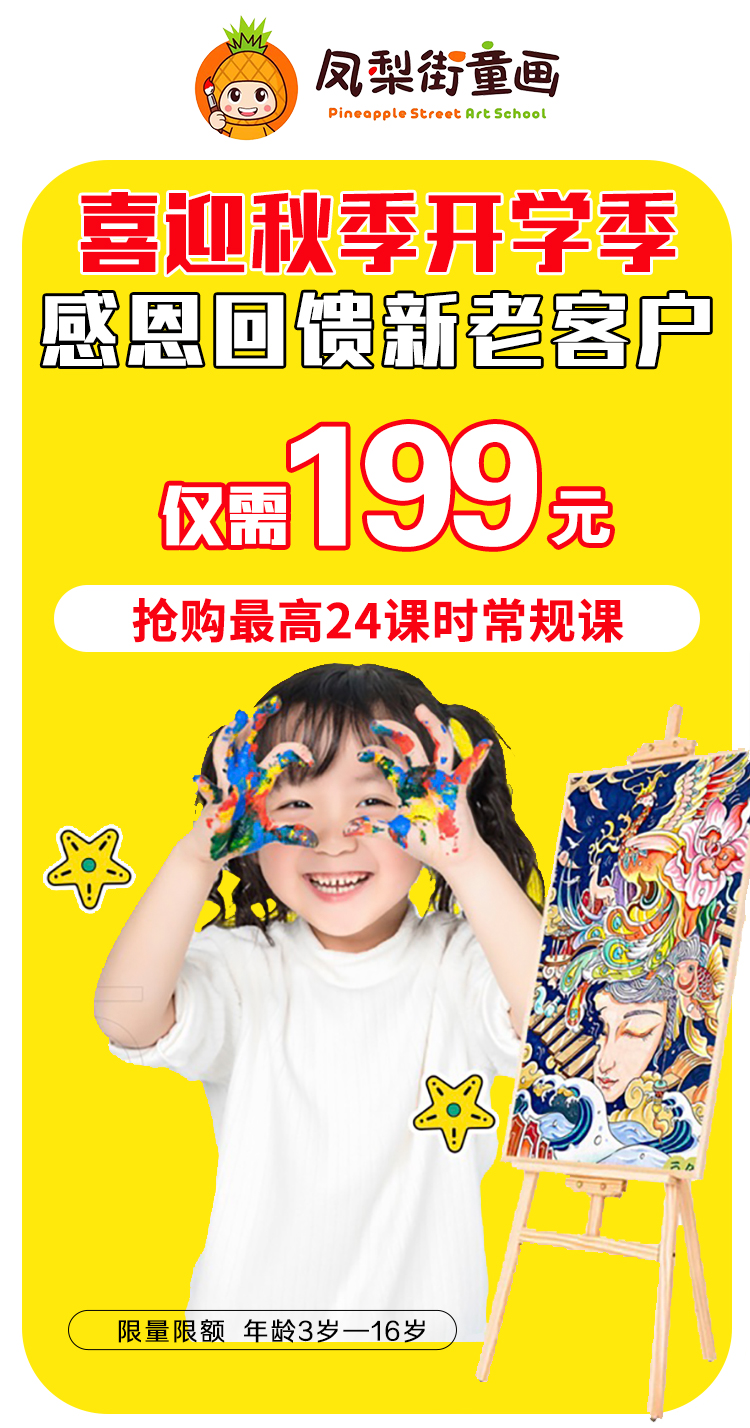 我正在参加【凤梨街童画】喜迎秋季开学季!感恩回馈新老客户!仅需199元抢购最高24课时常规课!
